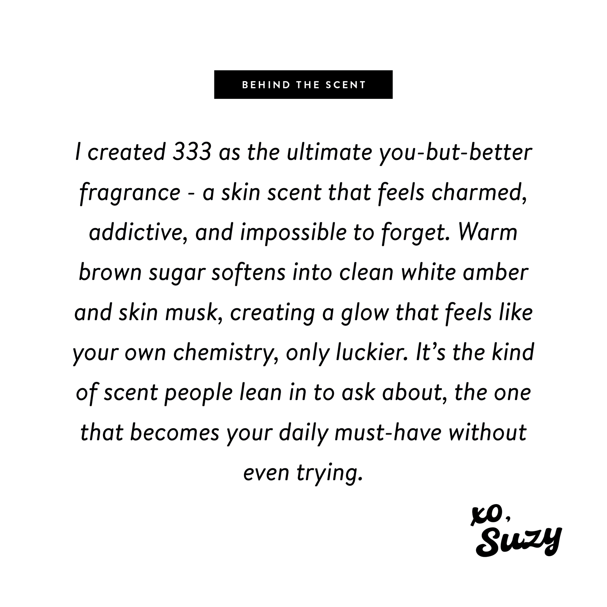 333 is lazy Sunday luxury bottled up — carefree, golden, and endlessly wearable. It blends seamlessly with your unique chemistry, creating a scent that’s unmistakably, irresistibly you (but better 😉).
