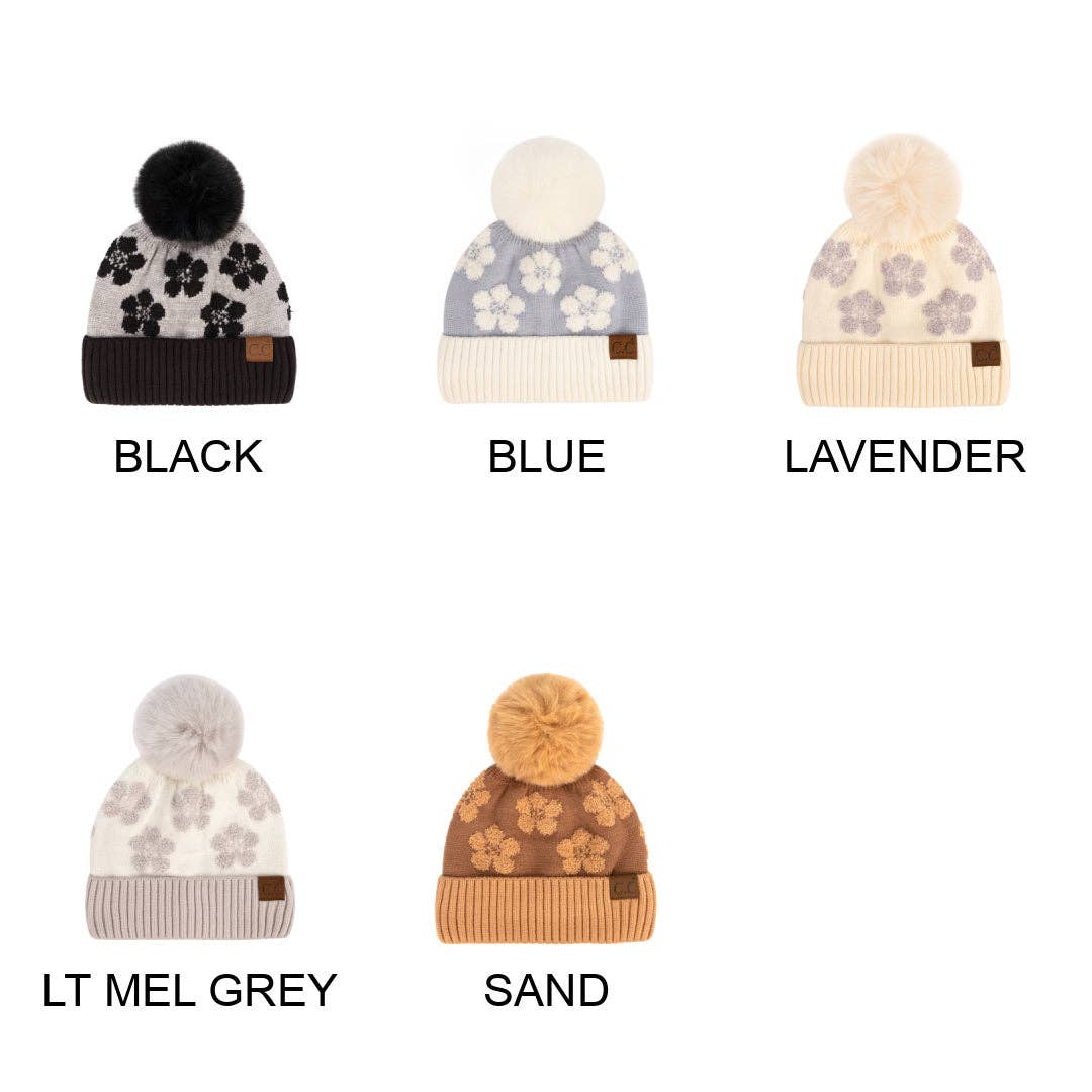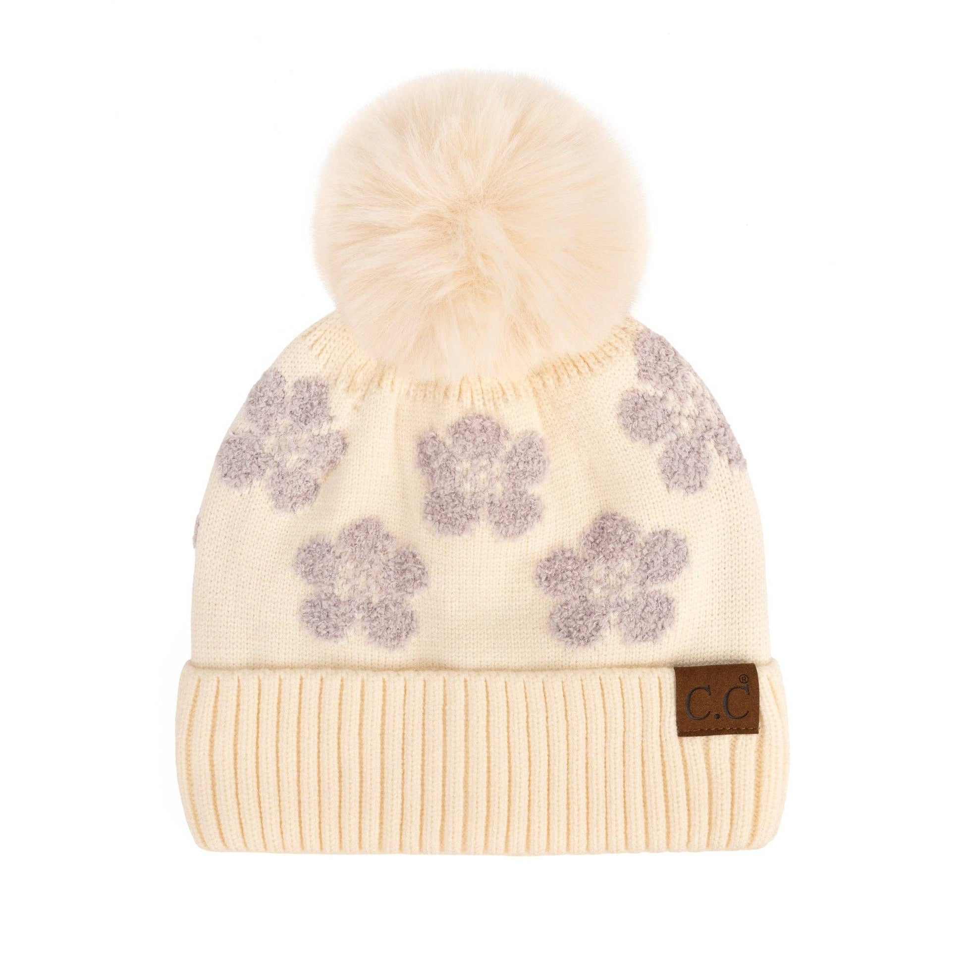 CC Chenille Daisy Pattern Beanie ( HAT-4009 )