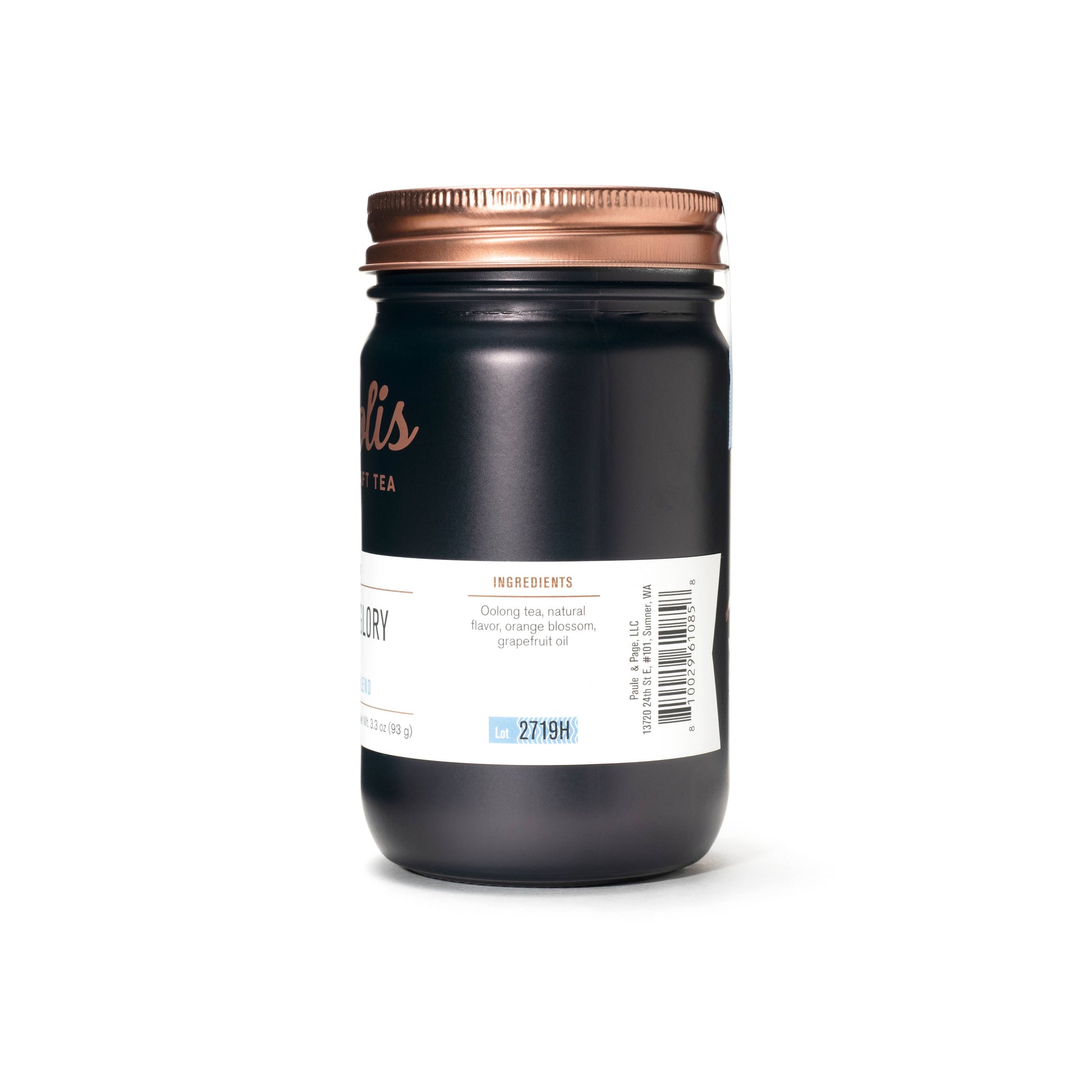 Jars contains 15 biodegradable tea bags in a powder-coated glass mason jar.