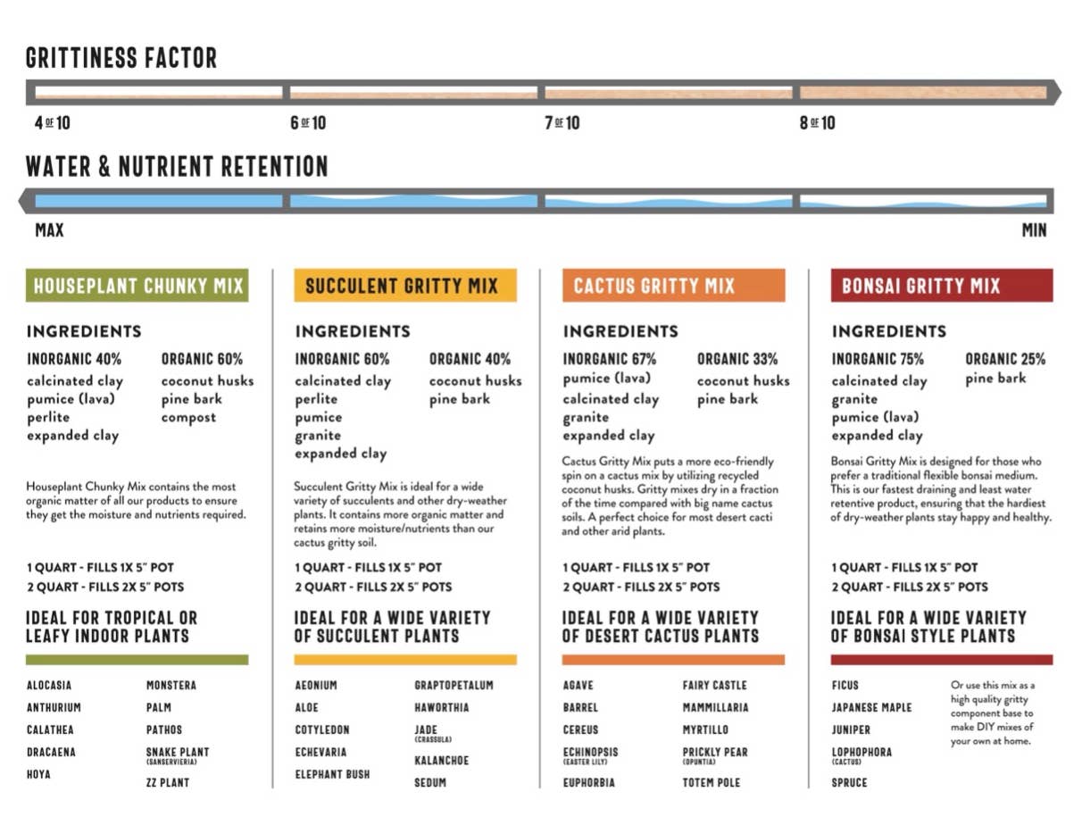 Sol Soils offers a variety of high-quality, gritty mix soils, soil amendments, and decorative soil toppers designed for the full spectrum of potted plants that may be in your collection. We select and hand-mix the best ingredients to produce fast draining soils that help protect against root rot, the number one killer of indoor plants.